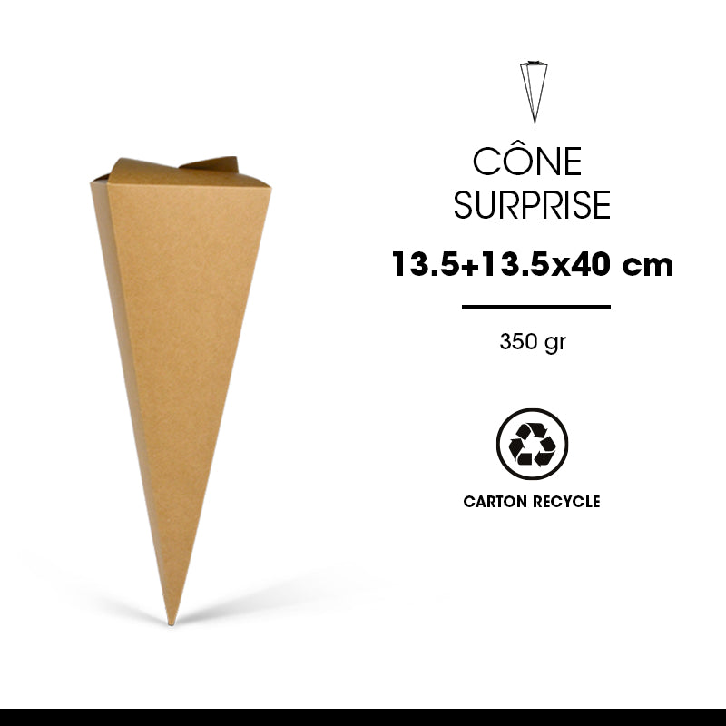 Pochette surprise fabriquée à partir de carton naturel brun recyclé en 350gr d'épaisseur. Produit livré à plat, se monte facilement.