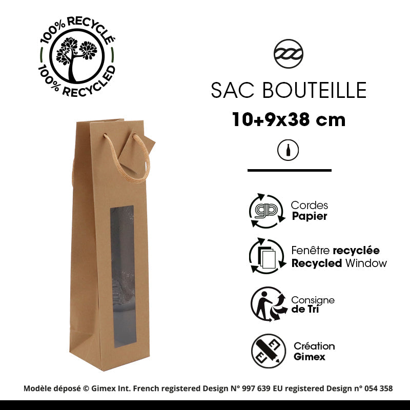 Gimex crée le premier sac bouteille en kraft brun avec fenêtre en PVC, permettant de mettre en valeur les bouteilles.