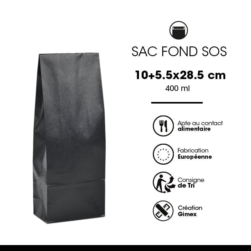 Sac alimentaire SOS 400 ml kraft noir vergé par 1200