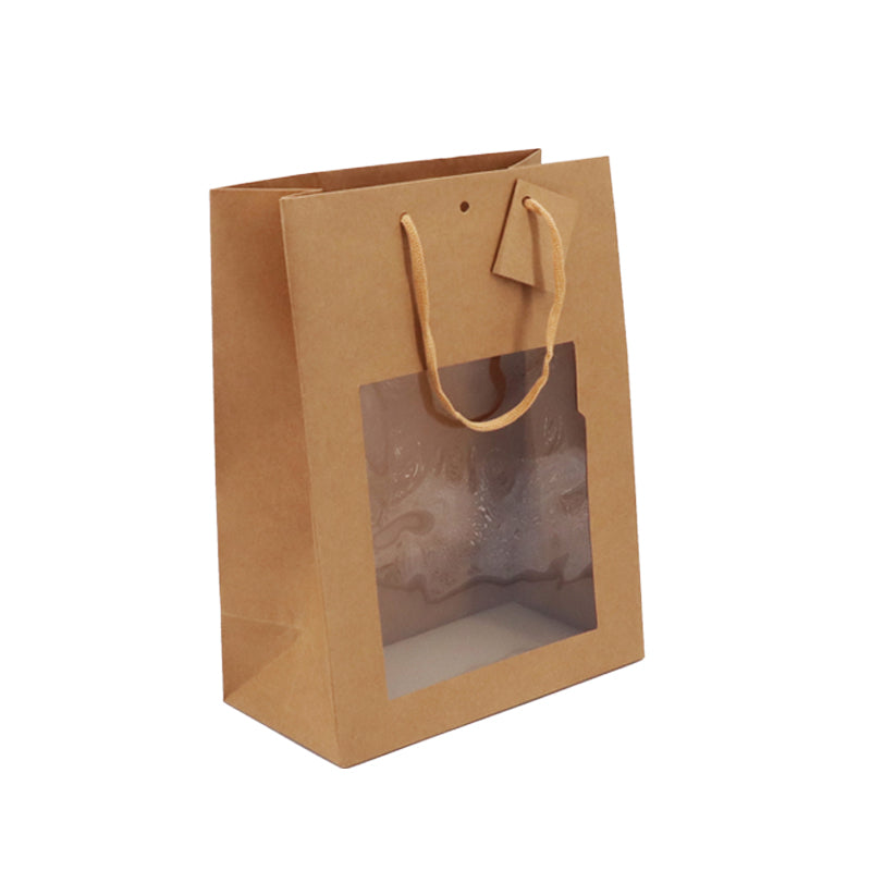 Sac luxe Middle Vertical fenêtre kraft brun poignées papier 22+11x28cm par 168