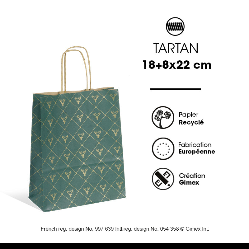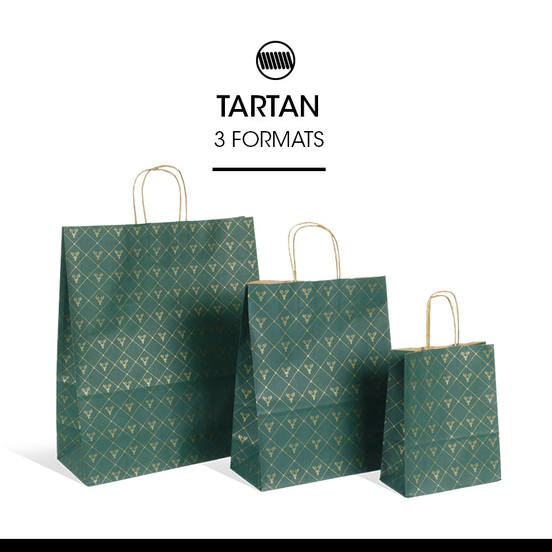 Sac Tartan kraft brun poignées torsadées 18+8x22cm par 250