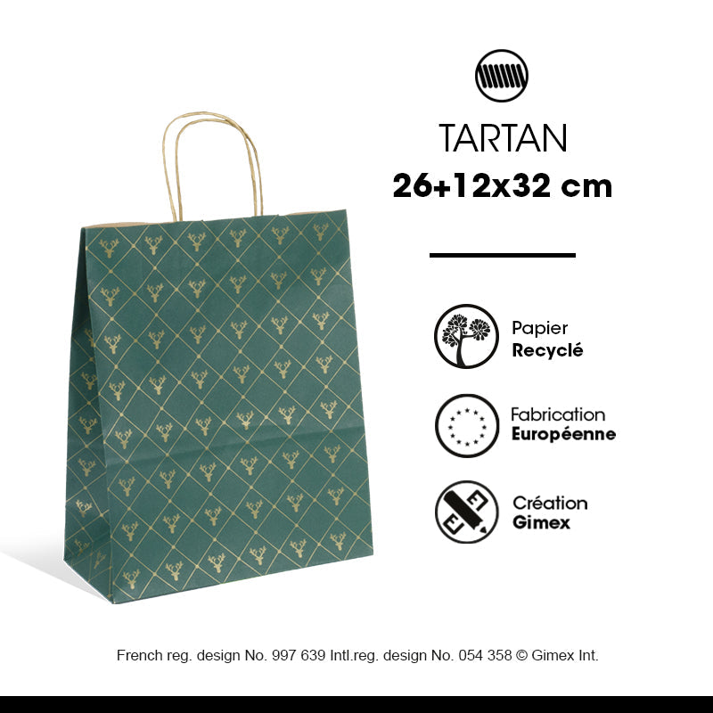 Sac Tartan kraft brun poignées torsadées 26+12x32cm par 250