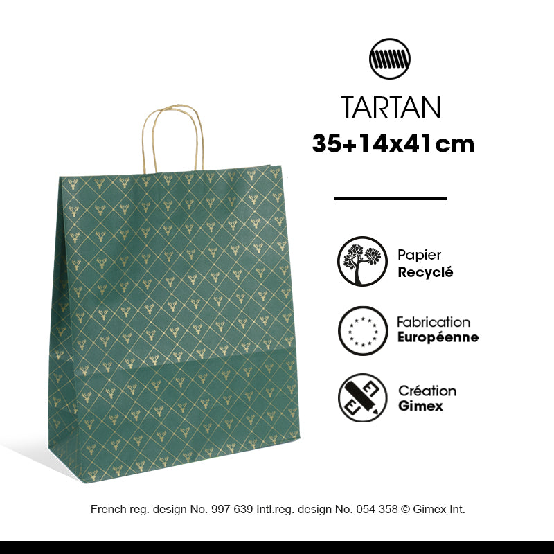 Sac Tartan kraft brun poignées torsadées 35+14x41cm par 250